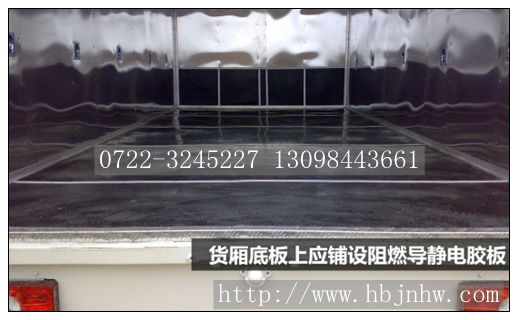 第四、爆破器材運輸車廂體底板上鋪設有阻燃導靜電膠板,并使用導靜電粘接劑粘固,膠液涂沫均勻,膠板粘接平整,接口嚴密,縫隙小,并用粘接劑填充,膠板不易起皺。