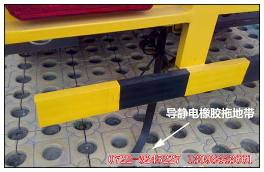 三、 導(dǎo)靜電橡膠拖地帶是安裝在車輛底架上的,能將靜電導(dǎo)入大地,使箱體始終處于零點位,防止靜電火花的產(chǎn)生。