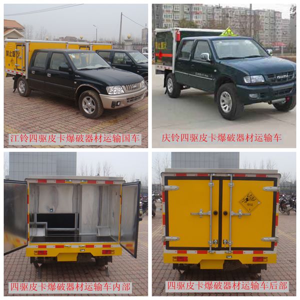 近段時(shí)間,貴州、廣西、云南、湖北等地各礦區(qū)、民爆公司都大量采購(gòu)四驅(qū)皮卡爆破器材運(yùn)輸車(chē),為什么貴州、廣西、云南、山西、遼寧等省各地礦區(qū)、民爆公司選擇微小型拉炸藥雷管爆破器材專(zhuān)用車(chē)時(shí),都會(huì)對(duì)四驅(qū)皮卡爆破器材運(yùn)輸車(chē),特別感興趣?糾其原因,四輪驅(qū)動(dòng)、動(dòng)力強(qiáng)勁,雙排座、底盤(pán)離地間隙高、功率大、乘坐舒適、油耗低、操縱輕便、維修方便等優(yōu)越性能,是眾多用戶選擇皮卡炸藥運(yùn)輸車(chē)做為運(yùn)送爆炸物品的理想用車(chē)。