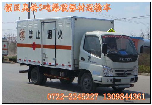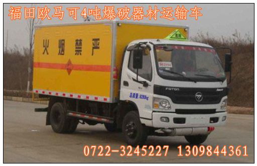 五、福田奧鈴4.5噸爆破器材運(yùn)輸車:底盤型號(hào):BJ1099VEPEA-FC,發(fā)動(dòng)機(jī)型號(hào):ISF3.8s4154,額定載質(zhì)量為4495KG,廂體尺寸為:4730X2000X1800(mm),貨廂容積為:17立方。