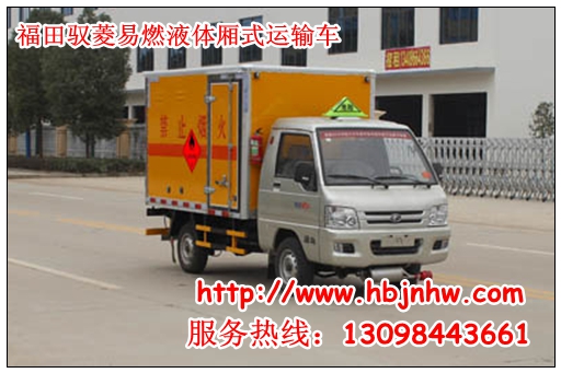 目前,能運輸三類危險品的易燃液體廂式運輸車有福田馭菱小型易燃液體廂式運輸車、江鈴易燃液體廂式運輸車、福田奧鈴易燃液體廂式運輸車、東風天錦易燃液體廂式運輸車等。