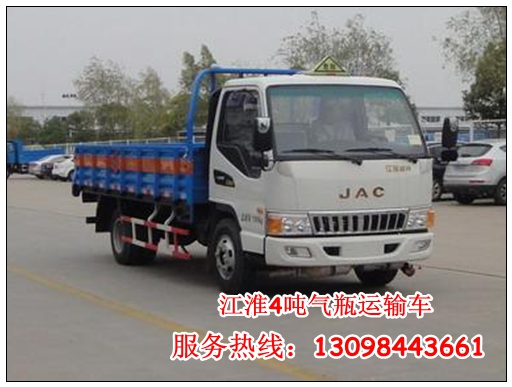 四、江淮氣瓶運(yùn)輸車(chē):采用江淮HFC1071P82K5C2Z型底盤(pán),搭載HFC4DA1-2C柴油發(fā)動(dòng)機(jī),發(fā)動(dòng)機(jī)排量為2771ml,發(fā)動(dòng)機(jī)功率為88kw;整車(chē)尺寸為:5995*2195*2330(mm),貨廂尺寸為:4180*2010*550(mm);額定載質(zhì)量為4340kg,7.00R16鋼絲胎。