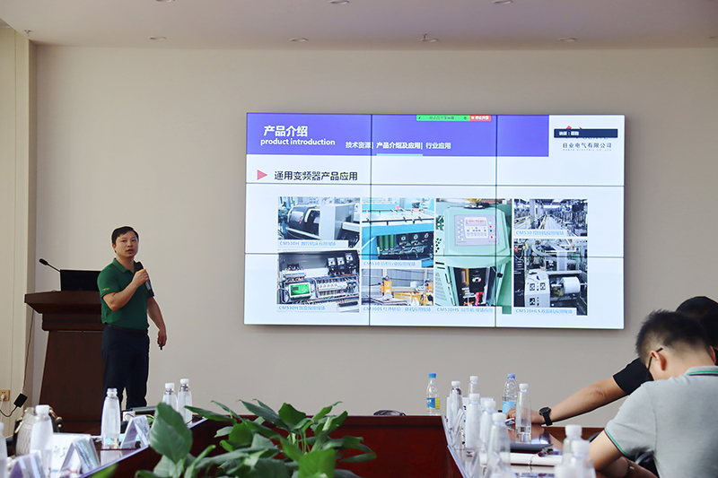研發(fā)總監(jiān)曾智波在會上介紹了公司現(xiàn)有產(chǎn)品情況和新產(chǎn)品研發(fā)計劃。公司產(chǎn)品以CM通用變頻器、BM施工升降專機(jī)及總線產(chǎn)品三大類為主線,并在此基礎(chǔ)上開發(fā)出更多緊貼用戶需求的行業(yè)產(chǎn)品。關(guān)于BM施工升降機(jī)我們旨在打造一套安全、穩(wěn)定、智能和節(jié)能的BM系列施工升降機(jī)物聯(lián)網(wǎng)智能駕駛控制系統(tǒng),為客戶提供制造智能施工升降機(jī)的全面技術(shù)解決方案。以今年四月份推出的BM300S系列施工升降機(jī)一體機(jī)為例,它是目前行業(yè)里控制系統(tǒng)和剎車系統(tǒng)最先進(jìn),安全系統(tǒng)最為完善的產(chǎn)品。同時下半年我們還會推出新系列CM800通用型矢量變頻器,加大公司平臺產(chǎn)品開發(fā),更進(jìn)一步提升公司產(chǎn)品技術(shù)升級,加強(qiáng)產(chǎn)品綜合競爭力,并將在十月份陸續(xù)投入市場。