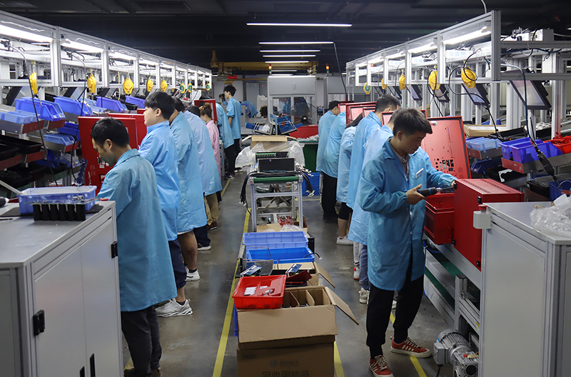 在會議中全體與會人員在龔總陪同下參觀了日業(yè)電氣生產(chǎn)車間。公司擁有標(biāo)準(zhǔn)化廠房14000平方,共分為三條主力生產(chǎn)線:0.44KW變頻器裝配測試?yán)匣a(chǎn)線、BM系列專機(jī)變頻器裝配老化測試生產(chǎn)線、5.5-15KW變頻器裝配測試?yán)匣a(chǎn)線。年產(chǎn)值達(dá)5億元。