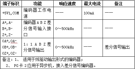 三、差分信號輸入PG3卡端子功能說明: