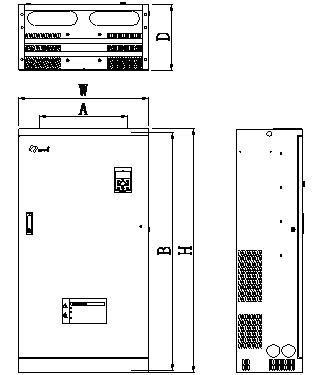 160KW以上變頻器外型尺寸及安裝尺寸示意圖
