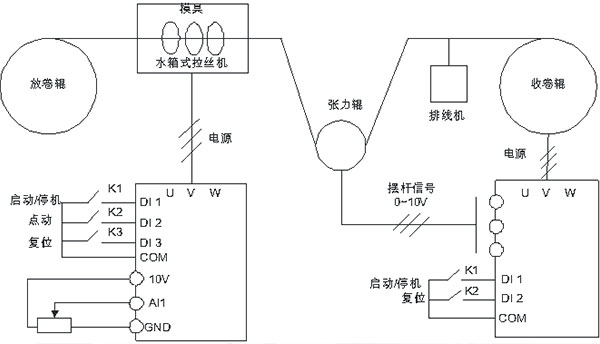 四 水箱式雙變頻拉絲機應(yīng)用方案